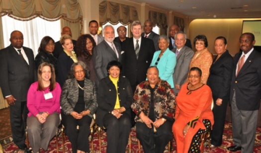 National Newspapers Publishers Association publishers pose with U.S. Agriculture Secretary Tom Vilsack. Vilsack stands in center between NNPA Chairman Danny Bakewell and NNPA Foundation Chair Dorothy Leavell. Photo/Roy Lewis