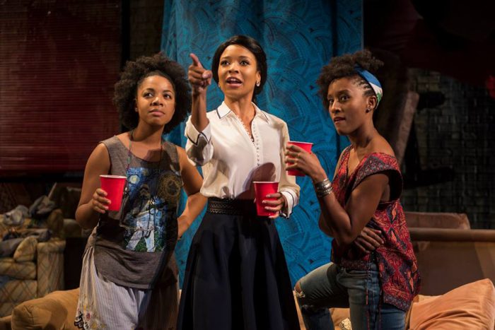 The three women have a common bond in which they seek to find refuge within a world of inconsistencies. They fantasize about the illusions of happier times that help them mask their discomfort by empowering them within the clothes that they wear. June (Leea Ayers) feels pretty when she wears her white cotillion dress, Octavia (Nora Carroll) dresses in a big pink Afro wig with sunglasses when she wants to feel and look like Pam Grier, however Imani (Celeste M. Cooper) just doesn’t care about what she wears. Her mask is trying to be a stand-up comedian and bring back the life of her father’s laugh.