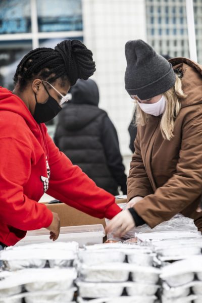 Hundreds of families at Parkway Gardens on the South Side received free traditional Thanksgiving meals with all the trimmings at an event facilitated by non-profits Related Affordable Foundation, Equality Should Be Normal (ESBN), and Chefs Friends for Justice. The groups joined together to provide more than 1,000 meals from Goat Group led by Stephanie Izard – world-renowned of chef Girl and the Goat. The freshly cooked meals included turkey, collard greens, macaroni and cheese, sweet potatoes, pumpkin pie, cranberry sauce, and cornbread.