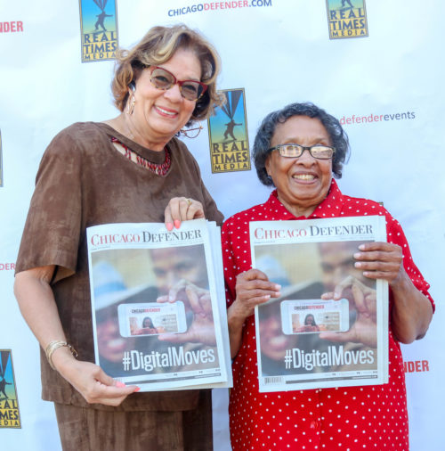 photo by Dorion Lewis. Carolyn Palmer, Chicago Defender Society Columnist; and Peggy Montes, of the Bronzeville Children’s Museum.