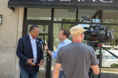 Photo by Dorion Lewis. NBC 5’s Patrick Fazio interviews The Rev. Jesse L. Jackson, of Rainbow/PUSH.