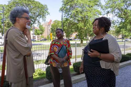 Photo by Spencer Bibbs. Curtis Lawrence, of Columbia College Chicago, stands with Wynona Redmond and Adorn Lewis Mitchell, of Wyn-Win Communications.