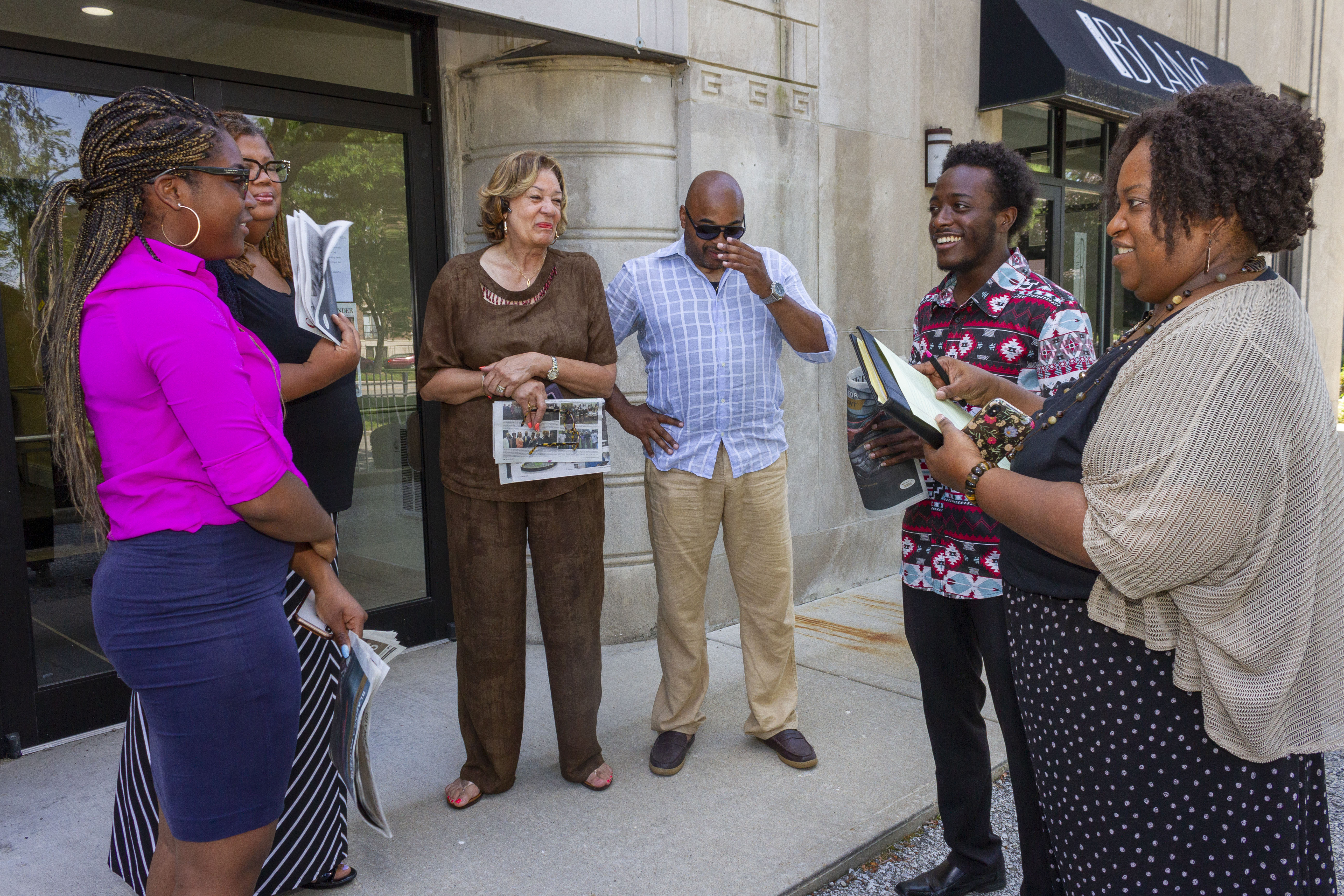 Photo by Dorion Lewis. Columbia College Chicago High School Summer Journalism Program students, with Professor Curtis Lawrence; Chicago Defender Intern R’riyon Draine; Chicago Defender Writer Katara Patton; Chicago Defender Society Columnist Carolyn Palmer; 12 Voices Columnist Carl West; and Chicago Defender Intern Jonathan Jackson.
