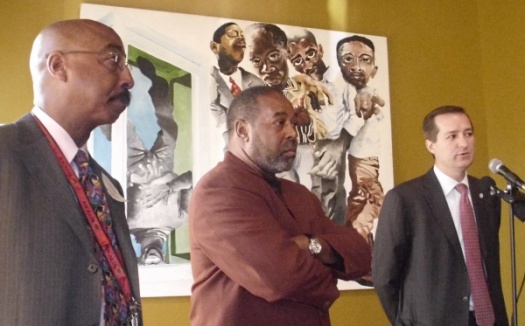 Photo Caption: Everett Rand of Midway Wholesalers (left), Larry Huggins of Riteway Construction and Tom Ricketts, chairman of the Chicago Cubs. (Defender/Kathy Chaney)