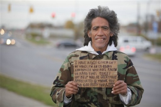 With a deep, refined voice, Ted Williams simply asked for help to get off the streets.