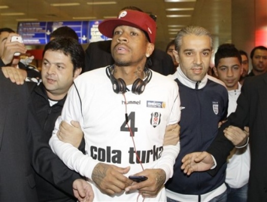 Dozens of fans greeted the 11-time All-Star at Ataturk Airport. Sporting a Besiktas jersey and a Philadelphia Phillies hat, Iverson waved at fans from inside his car before being driven to his hotel.