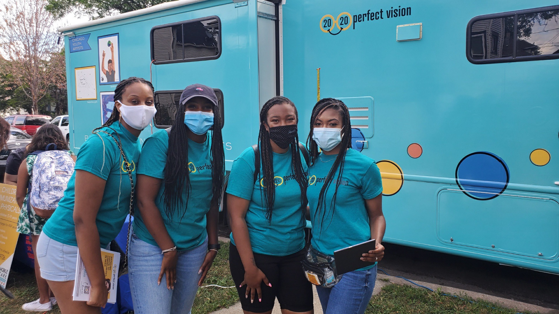 Jesus Christ himself! I never wanted to do this. I tell this story all the time, I was in my den sweeping my stairs and this random thought came to mind “how cool would it be to do a vision event in the year 2020 [20/20 is the indicator of perfect vision]”, it was 2018 at the time. As much as I tried to rid myself of the thought, it kept creeping back up and I found myself down a rabbit hole of research into the disparities of vision health care for Black and Brown children. I couldn’t explain why I was so enthralled but it was evident that there was a huge lack in vision health care so I began brainstorming ways to help. Later that year, I attended the Dream Village Tour here in Chicago, an event curated by Eunique Jones Gibson of “Because of Them We Can”. The entire premise was to inspire dreamers to “take the pledge to build your dream and village”. I remember they had transformed this school bus into a classroom of sorts where they were having coding workshops led by “Black Girls Who Code” for the kids who attended the event. When I stepped on that bus I knew instantly that’s what I wanted to do…transform a vehicle into this really cool experience making it fun and exciting for kids of color to get their eyes checked. I had never seen anything like it before. You can tell there was so much thought put into transforming this school bus to make it for “us” and I loved that, and wanted to create something similar.