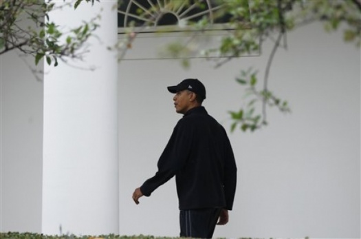 Photo Caption: President Barack Obama walks down the West Wing colonnade of the White House in Washington after he returns from a private game of basketball Sept. 26. (AP Photo/Charles Dharapak)