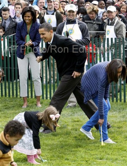 WASHINGTON — President Barack Obama and his family opened the annual Easter Egg Roll Monday, cheering on a large throng of children lined up for fun and games on the South Lawn of the White House. Obama and his wife, Michelle, appeared along with daughters Malia and Sasha on a balcony overlooking the grassy area where hundreds of kids scurried for positioning for the much-sought-after egg-rolling competition. The president initially could only wave to the crowd, thanks to nonworking microphones. He looked around for help and finally the sound system started working. Arrayed in front of the Obamas was a large crowd of kids bundled up against the early-spring chill. Vice President Joe Biden and his wife, Jill, also were present. Obama greeted the crowd, extolling the event as a great White House tradition and one that "reminds us that this is the people’s house." Obama said his job was to introduce the first lady to the crowd — and Mrs. Obama said that "our goal today is just to have fun. We want to focus on activity, healthy eating … We’ve got Easter Egg decorating, we’ve got basketball, we’ve got soccer … We want everybody to think about moving their bodies." Music star Fergie sang the "National Anthem" after the president spoke. The White House allotted tickets for the event to gay and lesbian parents as part of the administration’s effort to reach out to diverse communities. For the first time, it distributed tickets over the Internet, rather than requiring interested participants to stand in line for hours to get in. The administration also distributed tickets to large numbers of schoolchildren in the District of Columbia and in neighboring Maryland and Virginia. ______ Copyright 2009 Associated Press. All rights reserved. This material may not be published, broadcast, rewritten, or redistributed.