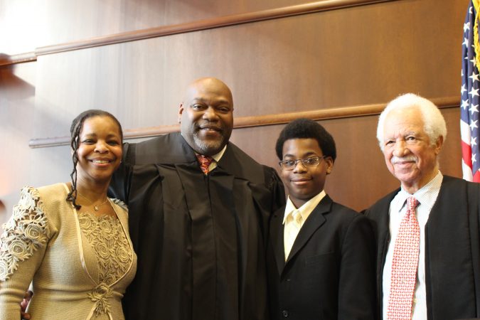 Surrounded by his wife and son, he was sworn in by the Honorable Justice Charles E. Freeman. Putting on his black robe, he addressed the room of well-wishers, “I can truly say I’ve been blessed — I have a testimony,” said Judge Richardson. Giving thanks to his mom and her hard work for raising him, he asked attendees to keep his ill brother in their prayers.