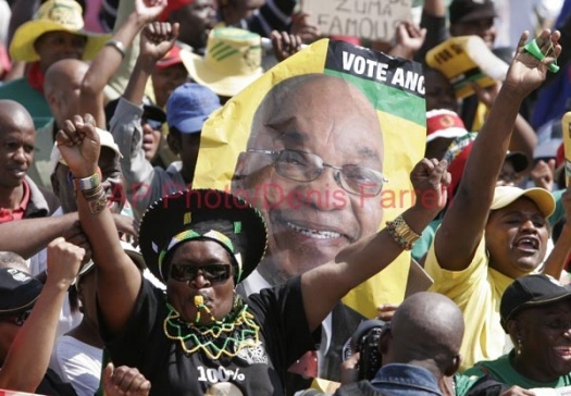 JOHANNESBURG — Jacob Zuma’s supporters danced and sang in the streets Thursday in celebration as partial results from South Africa’s parliamentary elections showed him in line to become the country’s next president. Zuma’s warmth and rise from poverty to political prominence have drawn adoring crowds throughout the election campaign, although critics question whether he can implement his populist agenda amid the global economic meltdown. Preliminary results from the 8.42 million ballots counted so far Thursday showed Zuma’s African National Congress party leading the vote with 66.71 percent. Parliament elects South Africa’s president by a simple majority, putting Zuma in line for the post when the new assembly votes in May. A record 23 million South Africans registered to vote. A 77 percent turnout has been recorded at those polling stations where counting has finished. Polling officials estimated a final turnout of about 80 percent. Final results are expected late Thursday or possibly Friday. Several thousand of Zuma’s supporters, though, were not waiting to begin the celebrations, gathering in a square in downtown Johannesburg late Thursday afternoon where Zuma was to address the crowd later. People were dancing and breaking out the noisemakers and barbecues. Some waved yellow flags with "Zuma 4 president" in bold black, while others broke out with Zuma’s signature anti-apartheid song "Umshini Wami," or "Bring Me My Machine Gun." The song has its roots among the ANC military training camps where frustrated guerrillas wished for weapons so they could return to fight apartheid. Te Ngubane, 52, a clerk at a police station, said she felt South Africa’s previous government hadn’t listened to people like her. "We trust Zuma because he is straight. He doesn’t go like this," she said rolling her hand in front of her chest as if it were a snake. The ANC views Zuma as the first leader who can energize voters since the legendary Nelson Mandela. But others say Zuma is too beholden to unions and leftists and will not be able to fulfill his promises of creating jobs and a stronger social safety net. At the end of the campaign, Zuma was talking not about creating jobs but staving off job losses. "We are expecting a lot — many houses, schools, jobs," said Precious Mosiane, 25, who is unemployed and looking for work. "We are aware that the economy is in trouble, but we are going to make sure" the government fulfills its promises. The ANC has swept every poll since the first post-apartheid election in 1994. In 2004, the ANC won 69.69 percent of the vote. Though victory was expected for the ANC, the party has been less sure of whether it can hold onto its two-thirds majority in what has become South Africa’s most contested election since the country’s first multiracial vote in 1994. The ANC needs to keep its two-thirds majority to enact major budgetary plans or legislation unchallenged or to change the constitution. The largely white opposition Democratic Alliance, according to the preliminary count, had about 16 percent. It was expected to take South Africa’s richest province, the Western Cape, from the ANC. The Congress of the People — formed by a breakaway faction of the ANC last year — was trailing with about 8 percent in preliminary results, despite expectations at one point that it would pose a serious challenge to the governing party. Turnout was heavy, and some stations had temporary ballot shortages or struggled because ballot boxes filled so quickly. The Democratic Alliance appeared to be doing well in the Western Cape — the heart of South Africa’s wine, fruit and tourism industries — because opposition leader Helen Zille had won praise as the mayor of Cape Town and courted mixed race voters. They account for more than half the population in the province but only a small minority nationwide. The ANC has never had a solid base in the province, and won it in the last elections by a narrow majority, thanks to the collapse of the New National Party, which had traditionally enjoyed strong local support. But since 2004, the local ANC has been consumed by infighting and power struggles. Zille had said her key target was to win the Western Cape and break the ANC’s stranglehold on power. Zuma, 67, was fired as deputy president by then-President Thabo Mbeki in 2005 after Zuma was implicated in an arms deal bribery scandal. After a series of protracted legal battles, prosecutors dropped all charges against him earlier this month, saying the case had been manipulated for political reasons and the criminal charges would never be revived. But they said they still believed they had a strong case against Zuma. In 2006, the former guerrilla leader was acquitted of raping an HIV-positive family friend. But he has been ridiculed for his testimony during the trial that he believed showering after the encounter, which he said was consensual, would protect him from AIDS. Zuma joined the ANC in 1959, and by 21, he was arrested while trying to leave the country illegally. He was jailed for 10 years on Robben Island, alongside Mandela and other heroes of the anti-apartheid struggle. In prison, Zuma resumed his schooling and began making a name for himself among ANC prisoners. He left South Africa in 1975 for 15 years of exile in neighboring Swaziland, Mozambique and Zambia, where he was appointed chief of the ANC’s intelligence department. Following the lifting of the ANC ban in 1990, Zuma was one of the first of the group’s leaders to return to South Africa. Associated Press writers Celean Jacobson in Pretoria, Clare Nullis in Cape Town and Michelle Faul in KwaNxamalala contributed to this report. ______ In photo: Supporters celebrate after South Africa’s prosecuting authority dropped corruption charges against Jacob Zuma, pictured in poster, clearing the way for him to become the country’s next president, free of the cloud that has hung over him for years, in Johann